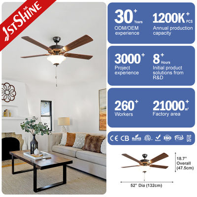 Ventilatore di soffitto retro tendenza Nuovo 5 lame di MDF con luci tradizionale catena di trazione