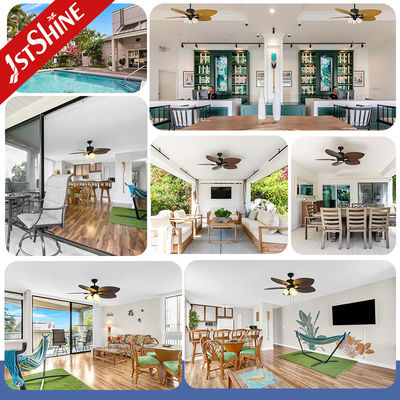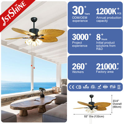 Ventilatore da soffitto decorativo con 5 pale a forma di palma con telecomando e motore silenzioso di alta qualità con luce