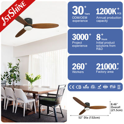 Ventilatore di soffitto a LED da 52 pollici con motore a corrente continua leggero 3 lame di legno massello decorativo