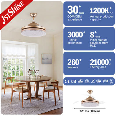 3 lame trasparenti Golden Modern Retractable Ceiling Fan Con Luce LED