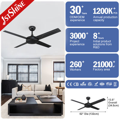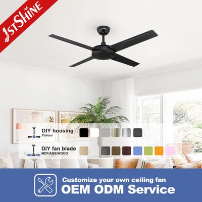 Ventilatore da soffitto in metallo nero con motore AC a 4 pale, 61W, 3 velocità, telecomando