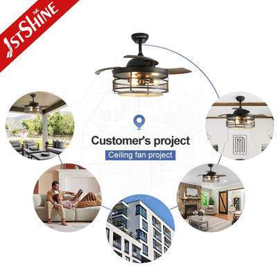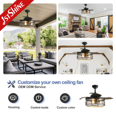 Ventilatore da soffitto con luce Ventilatore da soffitto industriale Lame retrattili Gabbia vintage Ventilatore a lampadario