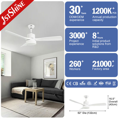 Ventilatore di soffitto da 52 pollici con 3 lame di ventilatore grigie solide, motore nero opaco e resistenza all'umidità adatto all'installazione all'aperto.