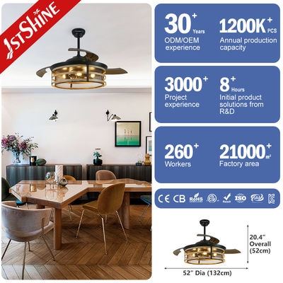 Il nostro ventilatore da soffitto rustico con luci ha 3 pale invisibili, che si estendono e si ritraggono automaticamente all'accensione/spegnimento del ventilatore. La pala è realizzata in materiale PC di alta qualità, che la rende più resistente. Adatto alle tue esigenze in tutte le stagioni. Le luci del ventilatore da soffitto rustico hanno 5 portalampada E26 standard, e ognuno dei portalampada è diviso. Offre anche varie funzioni come flusso d'aria reversibile, timer, modalità di risparmio energetico e funzionamento a basso rumore. Ideale per soggiorno, camera da letto, ristorante, sala da pranzo, ecc.