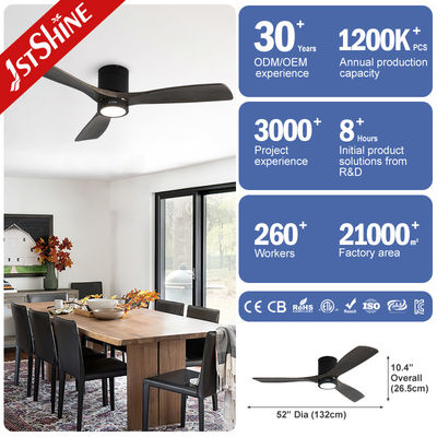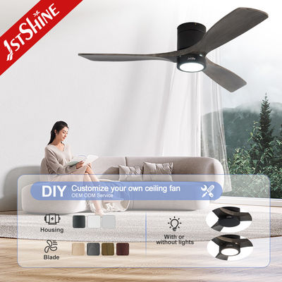 Ventilatore da soffitto intelligente Tuya a LED con montaggio a filo e 3 pale in legno naturale