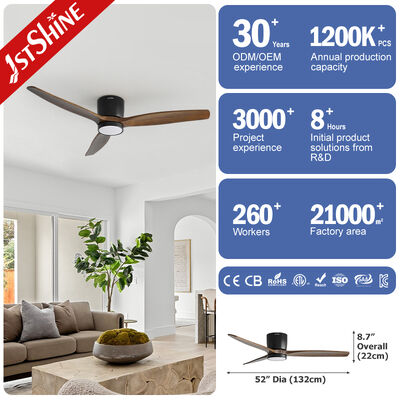 Questo ventilatore da soffitto da 52 pollici con 3 pale in legno massello e motore DC combina efficienza ed eleganza, rendendolo l'aggiunta perfetta al tuo spazio abitativo moderno. Il design a filo e la luce LED integrata offrono una funzionalità pratica, fornendo sia raffreddamento che illuminazione con una finitura elegante e stilosa.